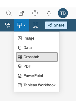 The filtered table can be downloaded by selecting "Crosstab" from the menu in the top-right hand corner of your webpage (see left hand screenshot below) and then choosing DOWNLOAD and CSV in the pop-up window (right hand screenshot below).